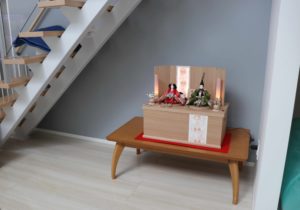 親王飾りをリビングに飾っていただきました。