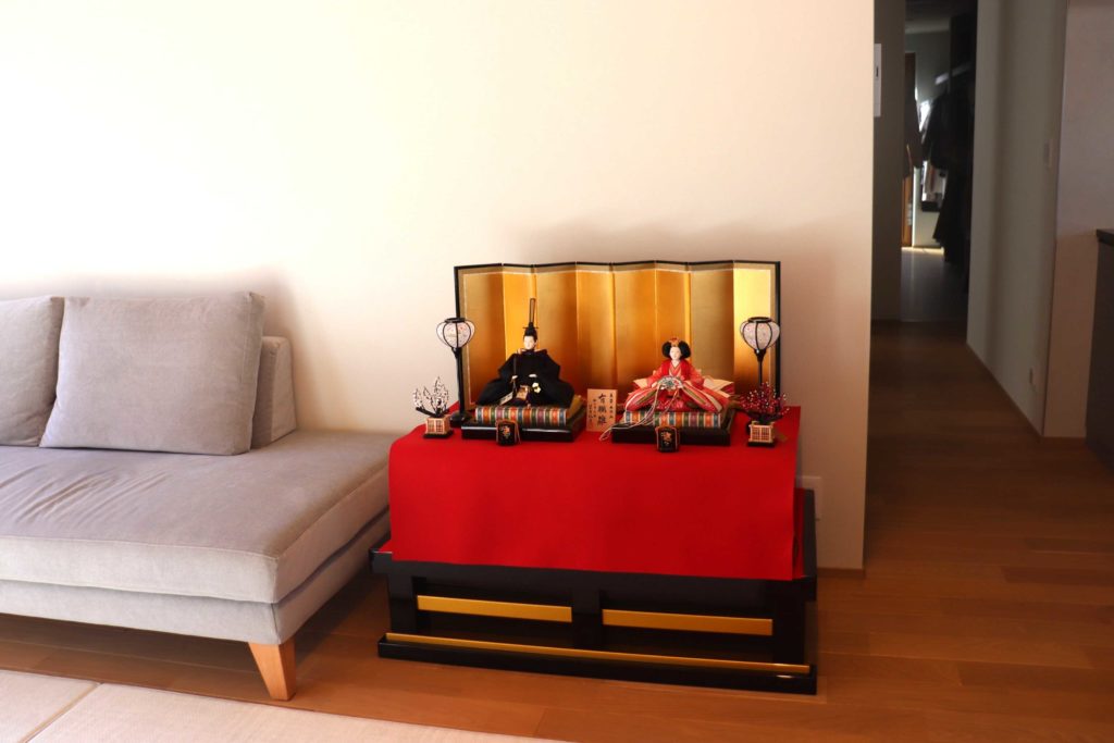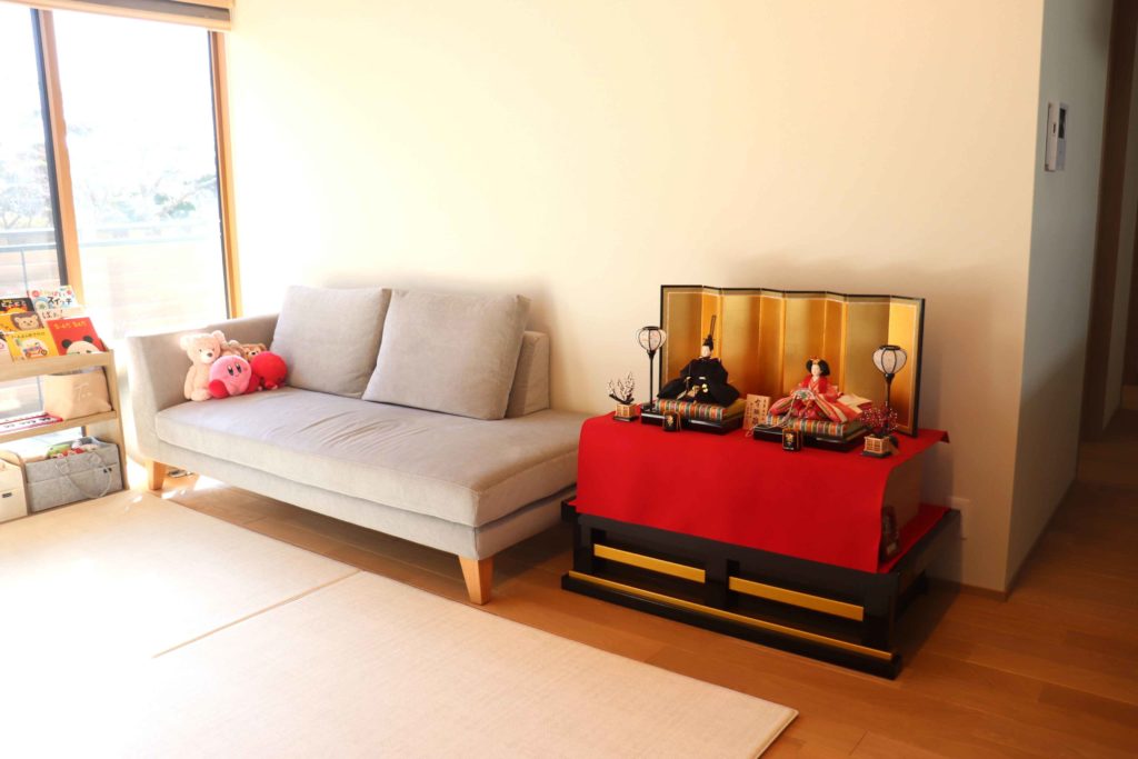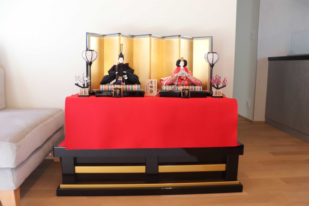 親王飾りをリビングに飾っていただきました。