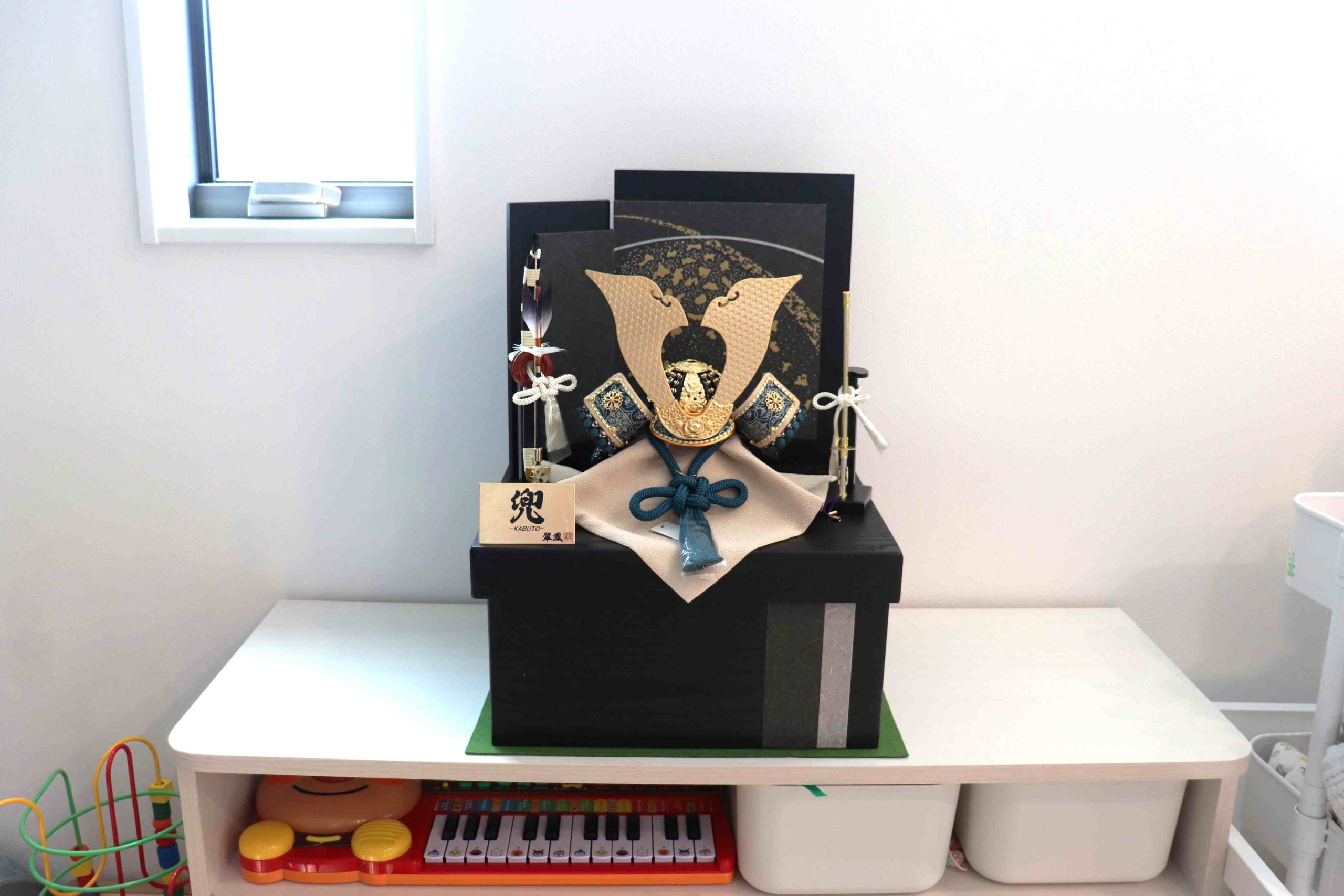 兜飾りをリビングに飾っていただきました。